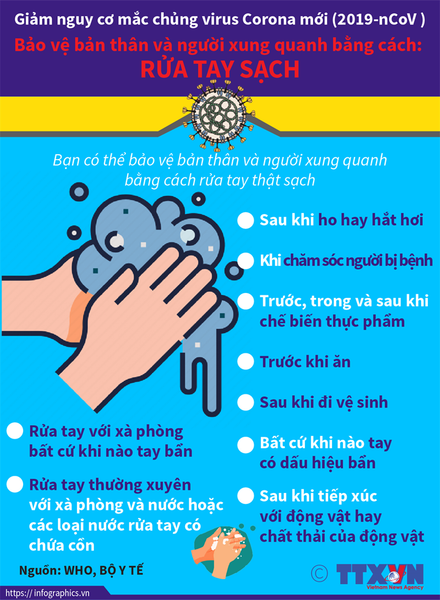 - Rửa tay bằng xà phòng và nước sạch hoặc bằng dung dịch rửa tay có cồn.